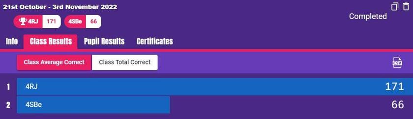 Well done children! It was great to see how many of you logged on to Time Tables Rockstars over half term and practised your tables! The winner of the half term battle was..... Mrs Johnson's class! Well done Mrs Johnson's class! We have set up another battle for this week so keep working hard. Next week, we might be having a battle between another year group, so make sure you are ready! Which class will be victorious this week?