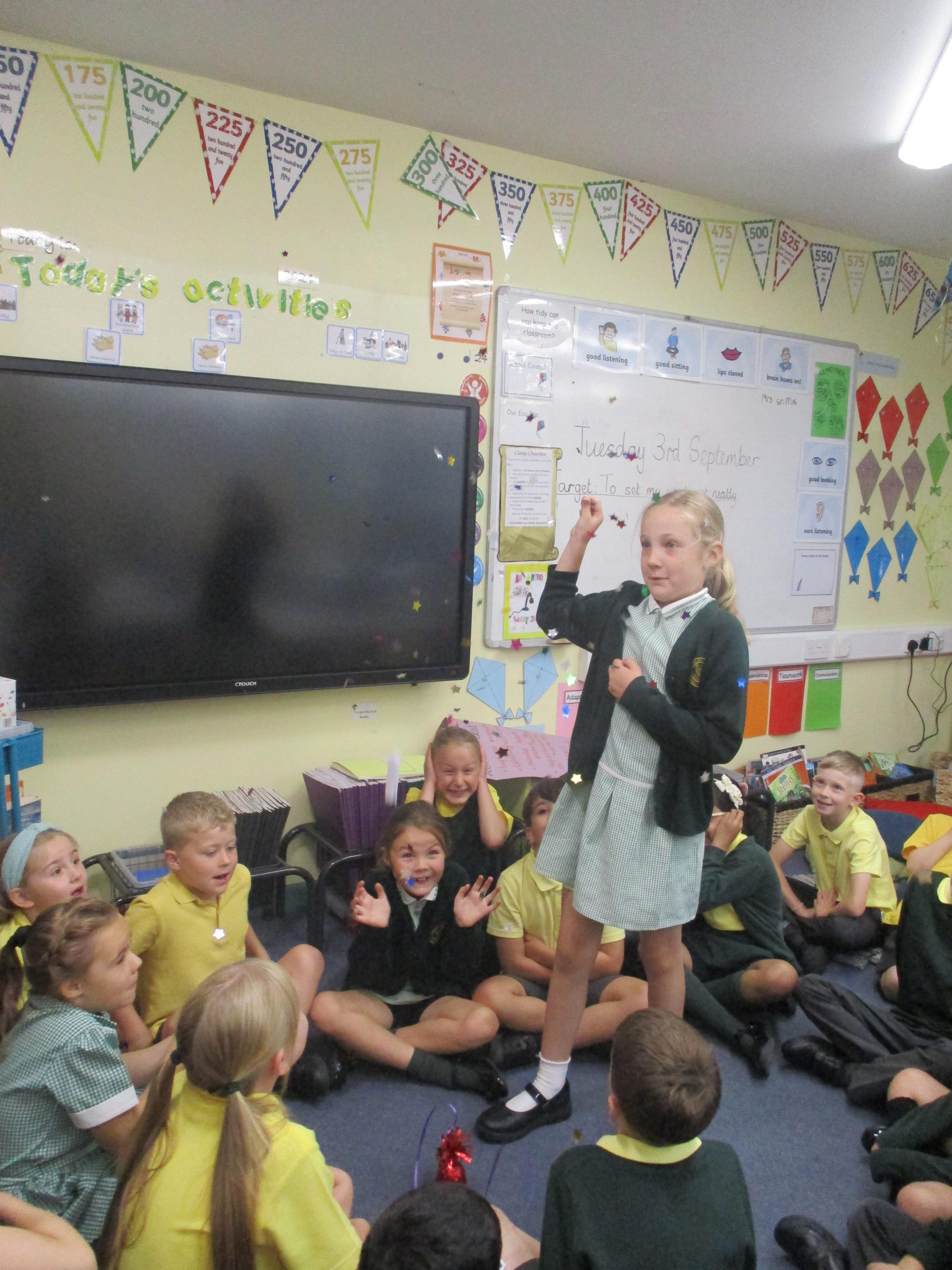 Once we have collected all the pieces of ticket, we will earn a visit by the Minister and a day of chocolate! We can't wait!