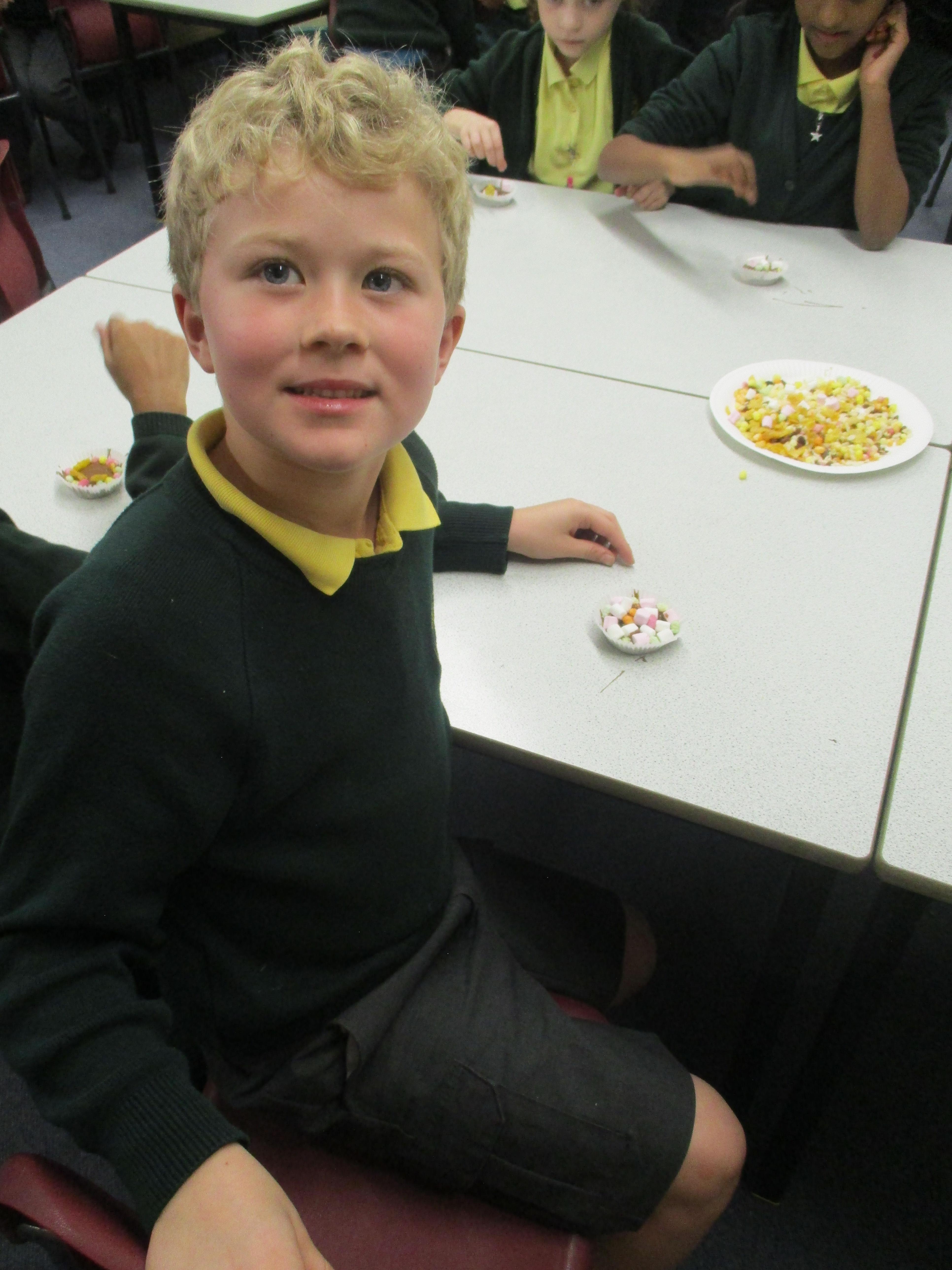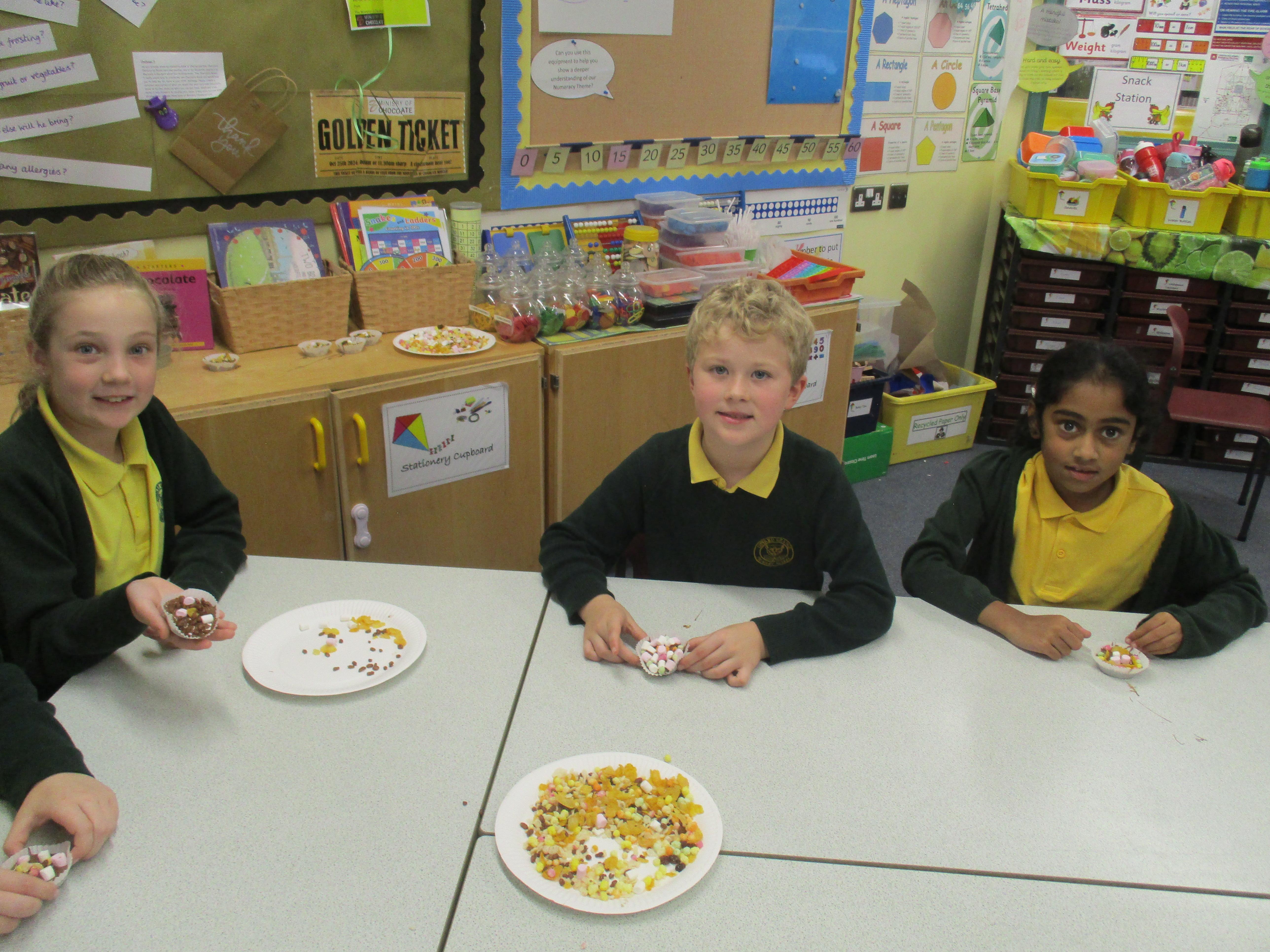 What an exciting time we have been having in Year 3 since term began! On the first day back we were astounded to discover a confetti filled balloon with an envelope attached. We were very excited to pop it and then read the contents. We discovered that 'The Minister of Chocolate' has set us a challenge and will send us pieces of a ticket as we achieve each of his challenges. Our first and second challenges were to create a healthy chocolate cake and then write the recipe. We really enjoyed baking and tasting cakes containing a variety of fruits and vegetables including courgette, beetroot, apple, carrot and banana. We also enjoyed decorating our cakes with a variety of chocolatey toppings. Yum!
