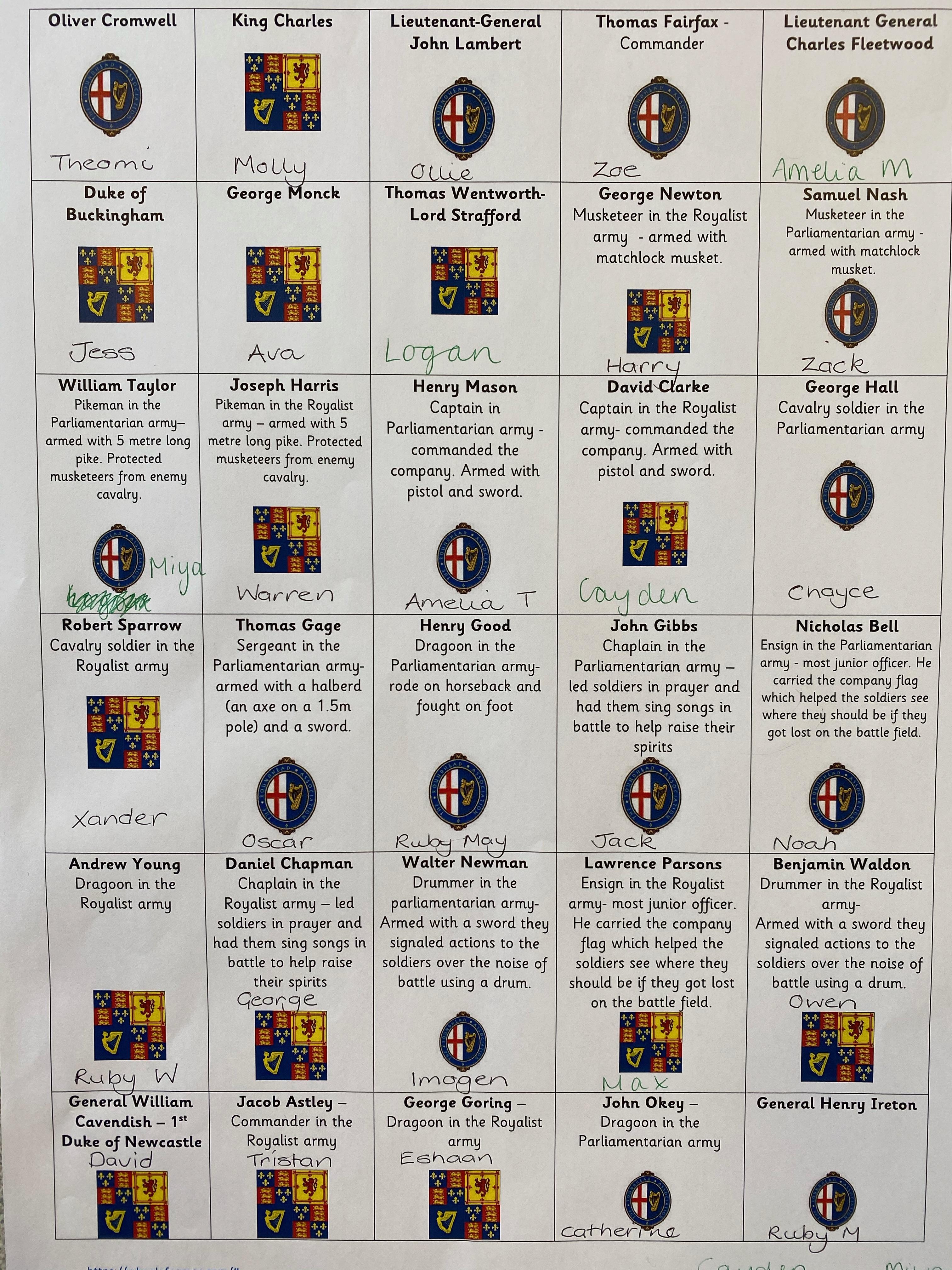 This morning you were each given the name of someone from the English Civil War. This is your role for this term!